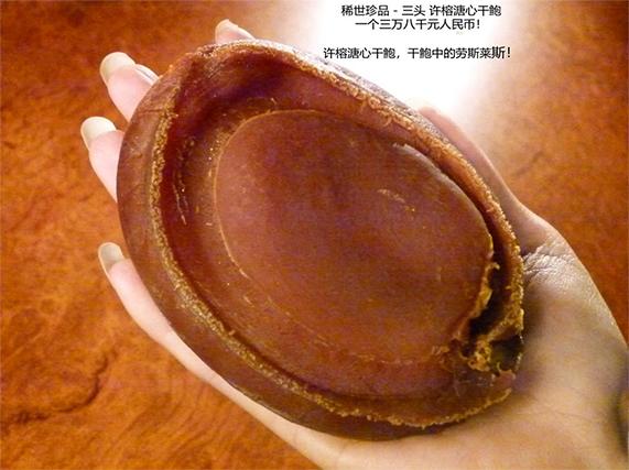 02. Three 3-head Xu Rong soft-boiled dried abalones were sold at the French "Eskefi" Chef's Auction for 114,000 yuan,